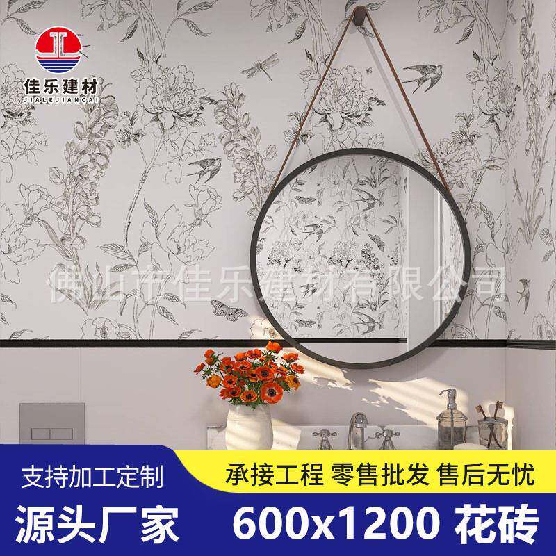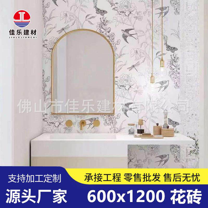 小燕子花片全瓷复古600x1200奶油色奶白色搭配卫生间墙地砖小花砖
