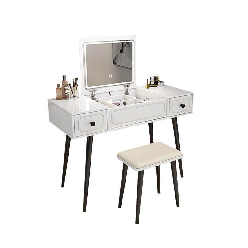 现代简约小户型翻盖梳妆台卧室轻奢隐藏镜带灯化妆桌收纳柜一体