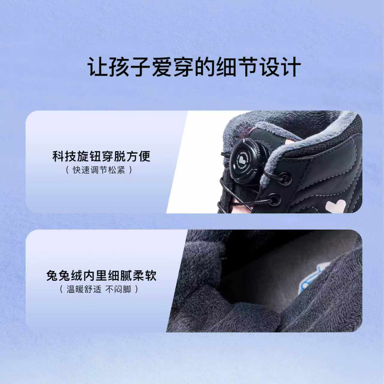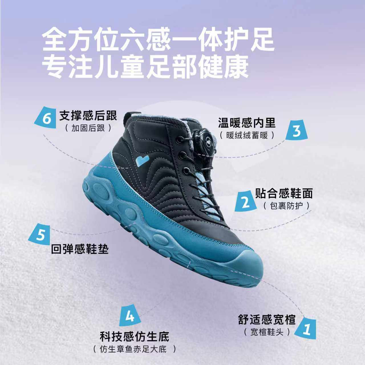 小蓝羊儿童冬季加绒保暖运动棉靴