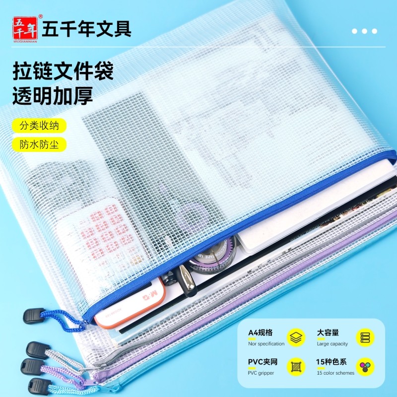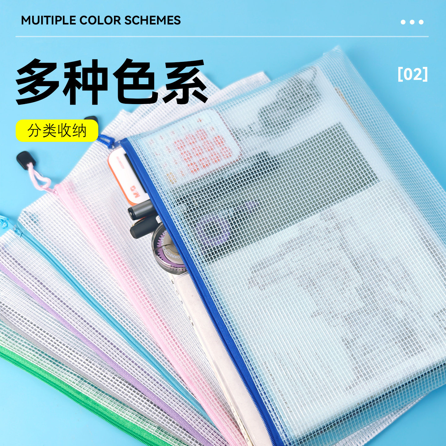 网格文件袋加厚透明网格拉链袋A4试卷收纳袋学生用考试文具袋防水笔袋办公用品批发公文档案袋资料袋包邮