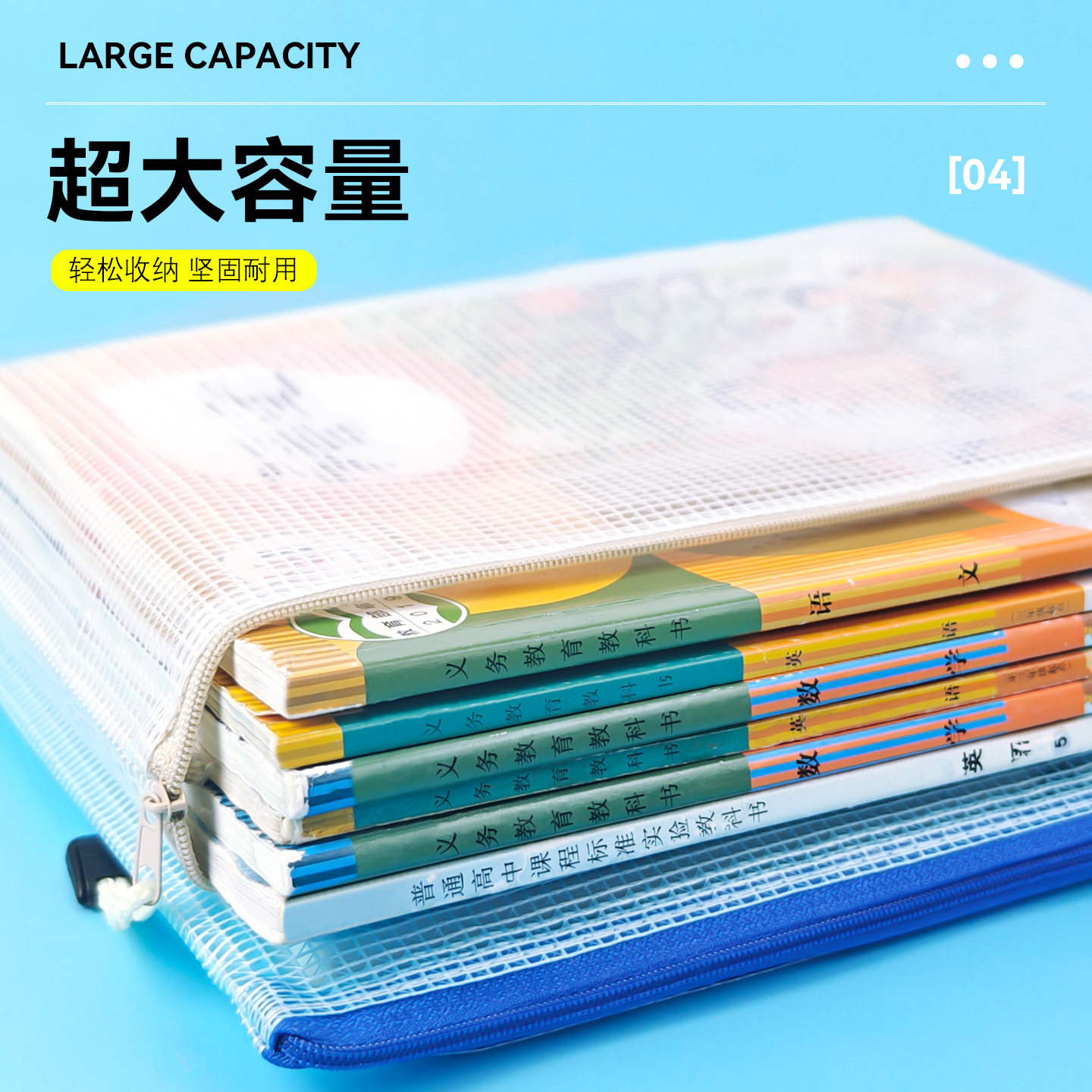 A4文件袋拉链式透明网格大容量收纳袋文件夹防水手提试卷袋小学学科分类袋子办公学生收纳文具专用PVC资料袋