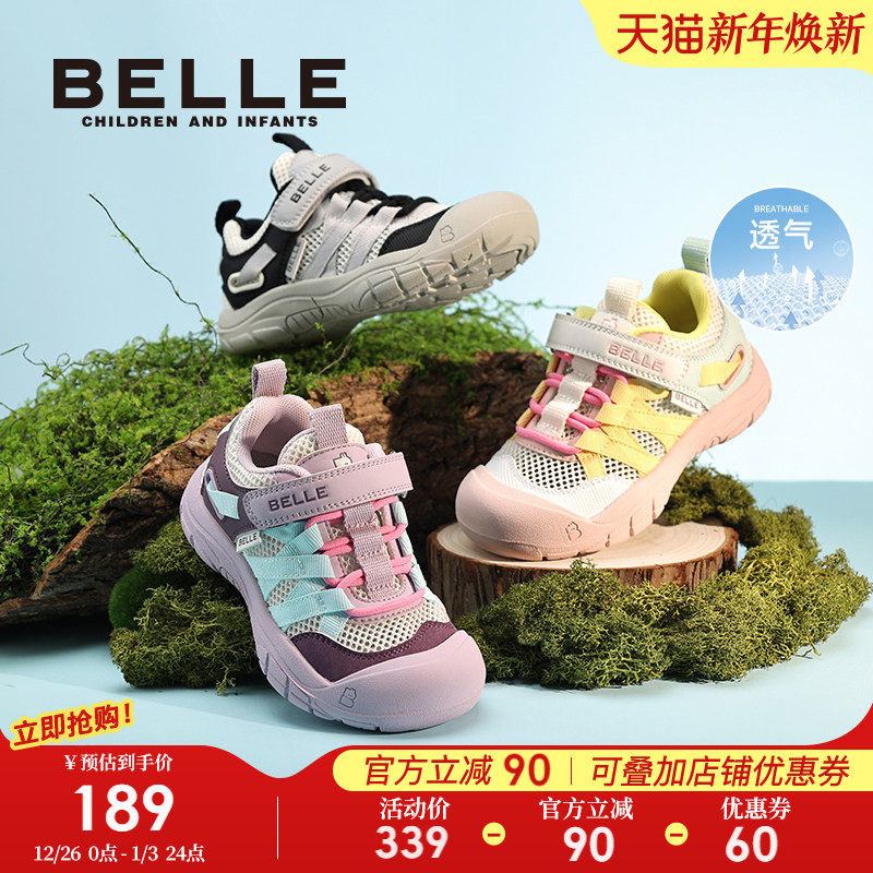百丽童鞋女童运动鞋2025秋冬新款儿童网面鞋透气男童户外鞋溯溪鞋