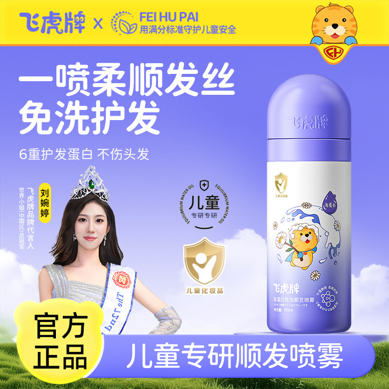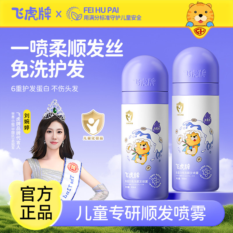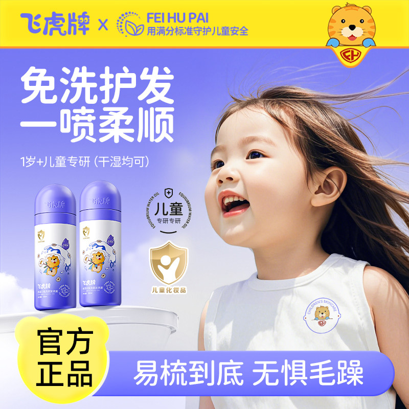 飞虎牌儿童角蛋白免洗顺发喷雾干枯毛躁柔顺头发护发素精油洗发