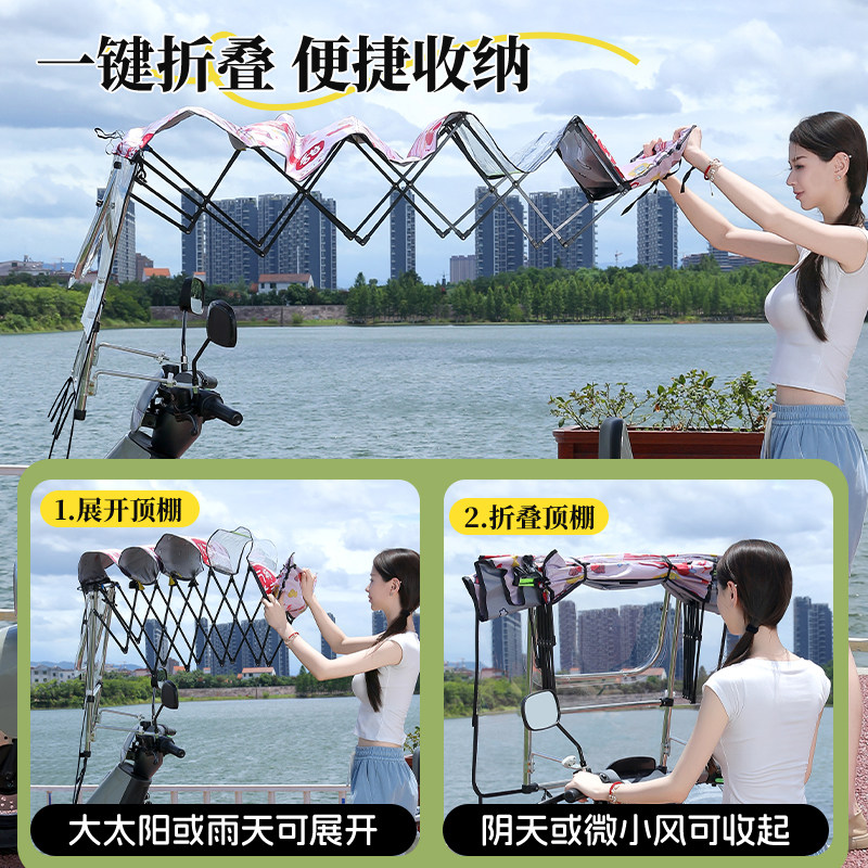 电动车雨棚全折叠电瓶摩托车遮雨棚挡风遮阳伞防晒挡板可折叠拆卸