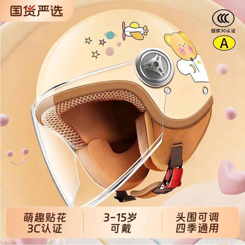 3C认证头盔电动电瓶车儿童男女孩秋冬保暖半盔四季通用摩托安全帽