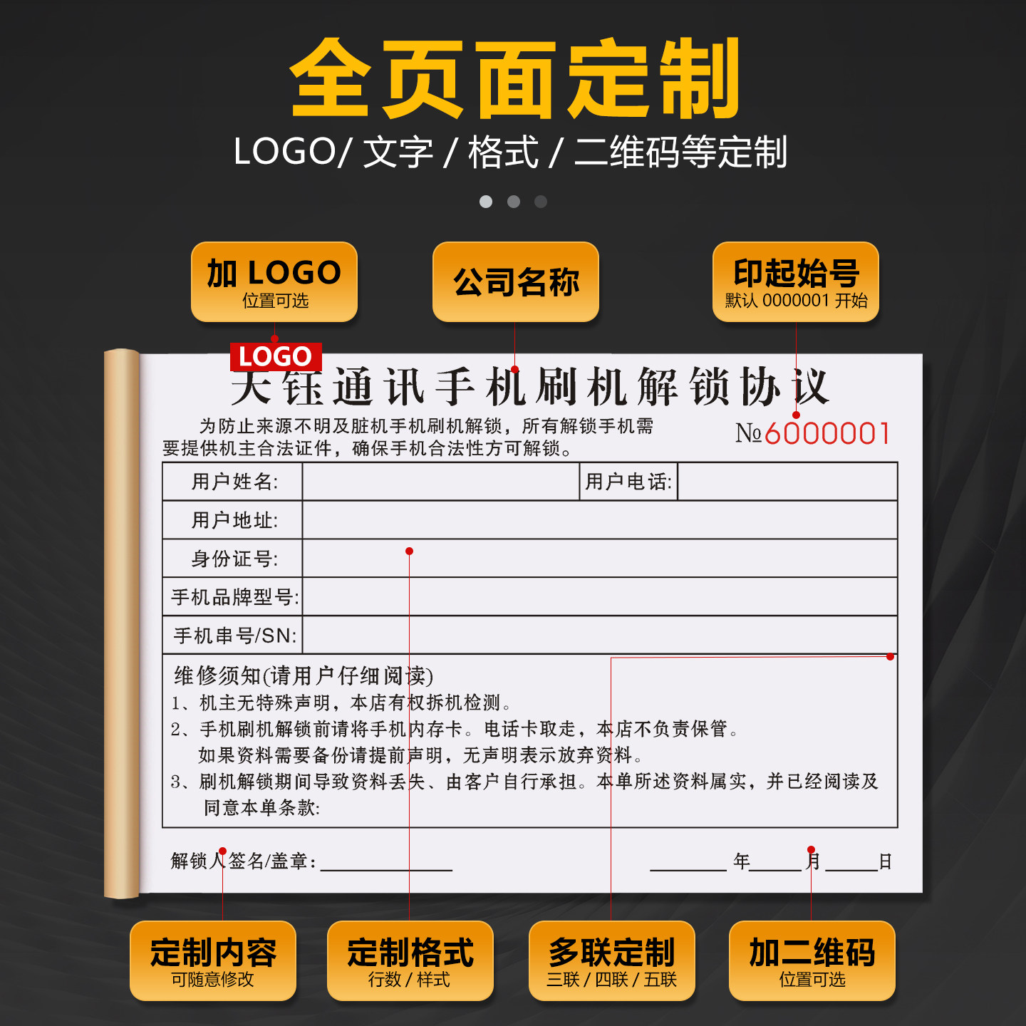 【手机换屏售后服务协议】维修店换屏解锁开锁修理受理单保修合同