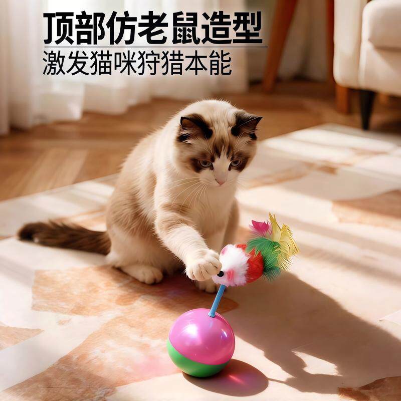 猫咪玩具不倒翁老鼠逗猫棒训练宠物猫玩具套装自嗨解闷养猫羽毛
