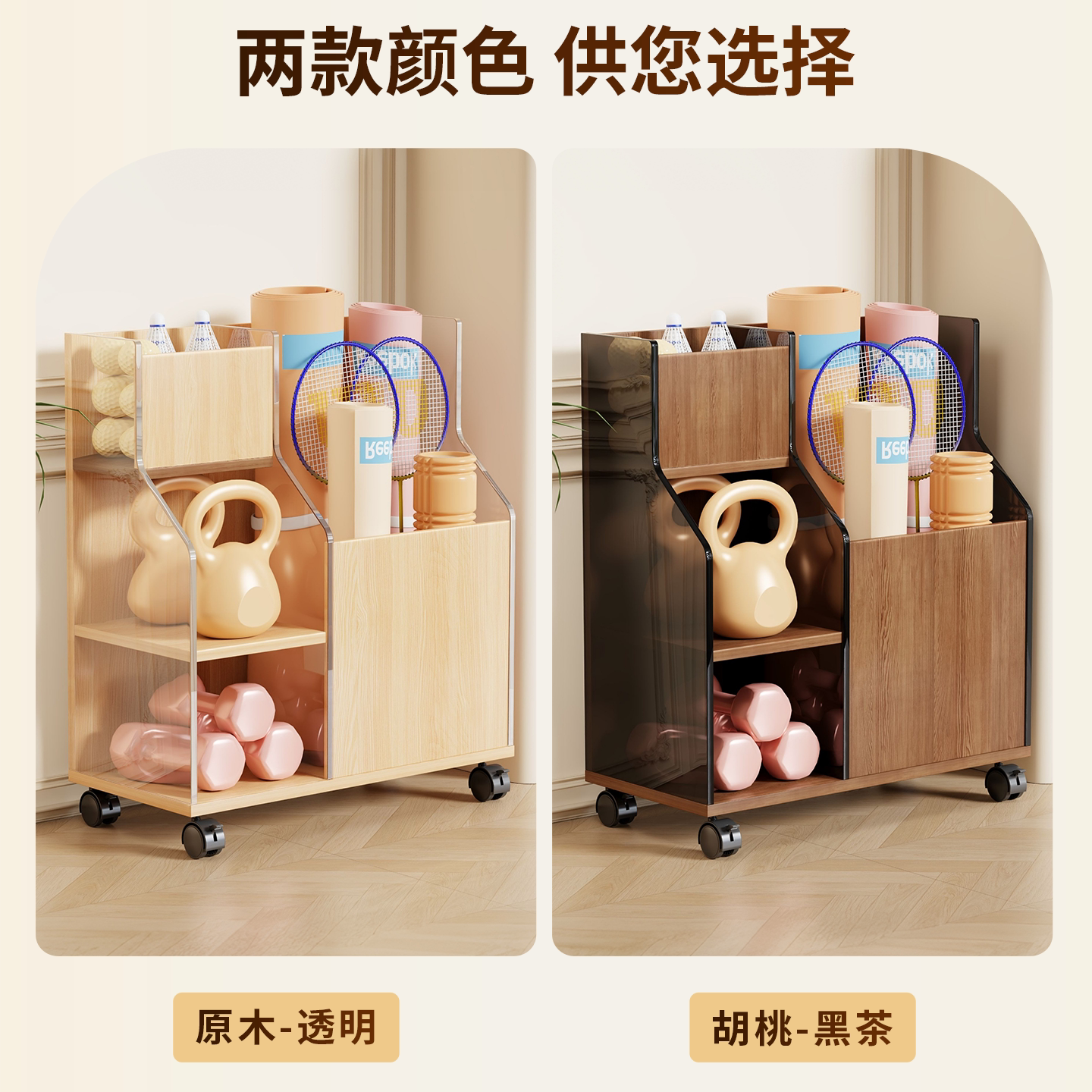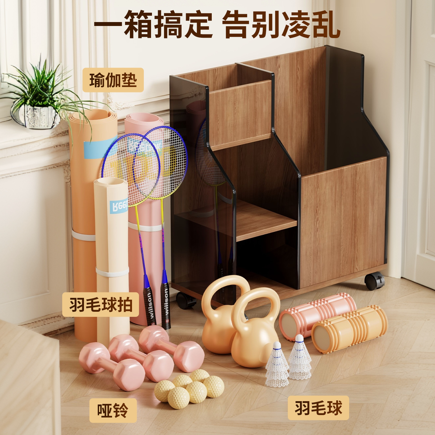 瑜伽垫收纳筐带轮运动健身器材拉伸工具置物架神器羽毛球拍收纳架