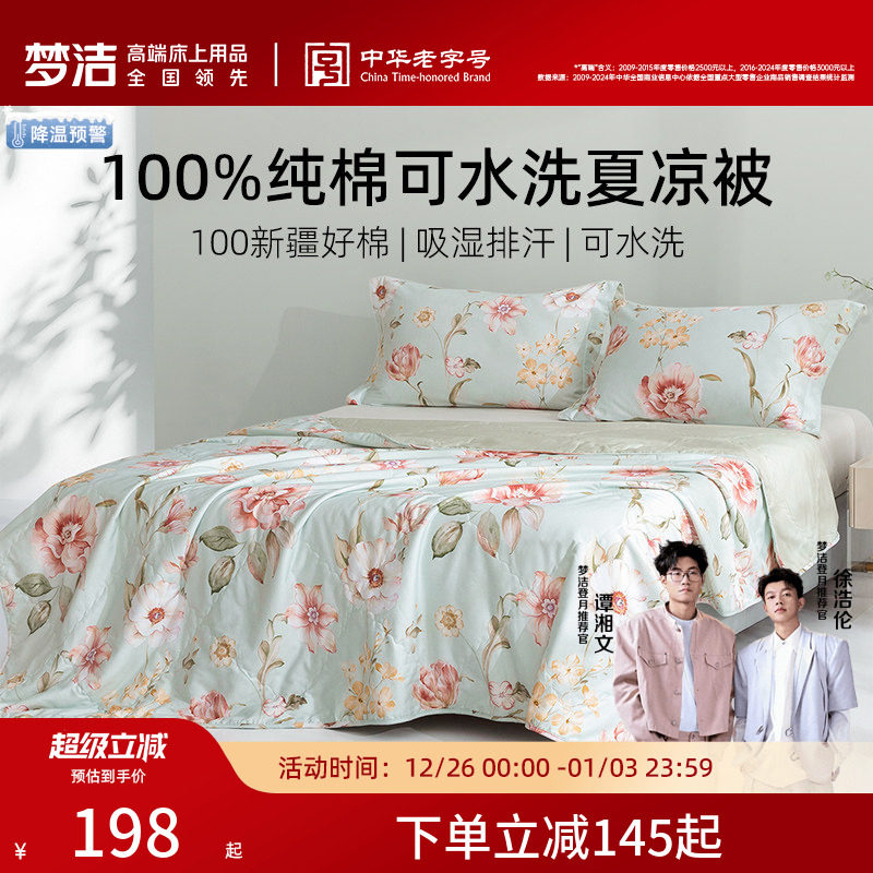 梦洁25年新品夏被子100棉空调被可机洗夏凉被夏季学生宿舍被芯