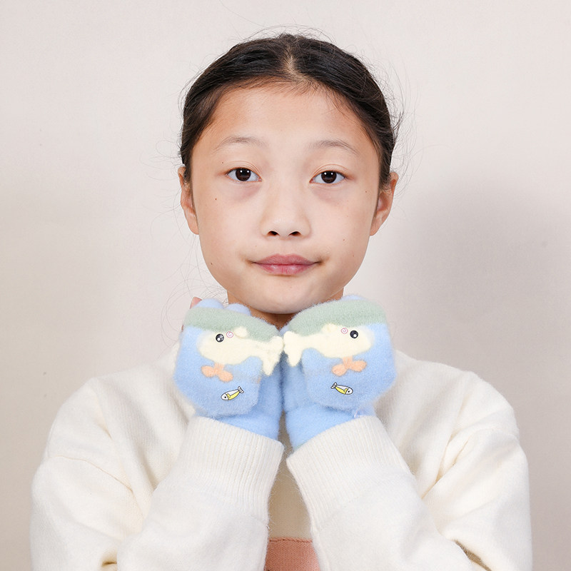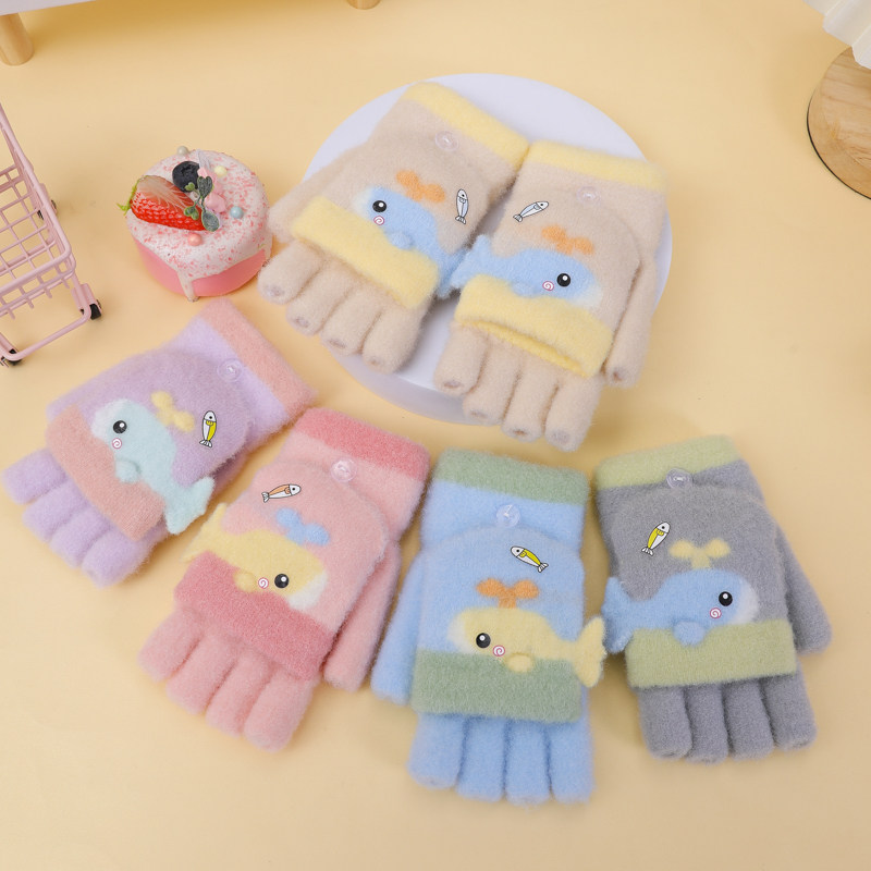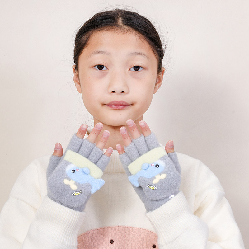 儿童手套男童可写字冬季保暖五指翻盖女孩学生半指写作业冬天卡通