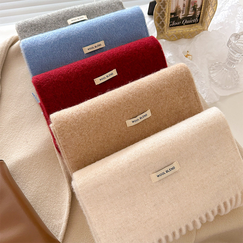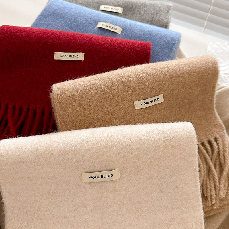 围巾纯羊毛混纺秋冬冬季女高级感保暖围脖女针织白色大衣蓝色红色