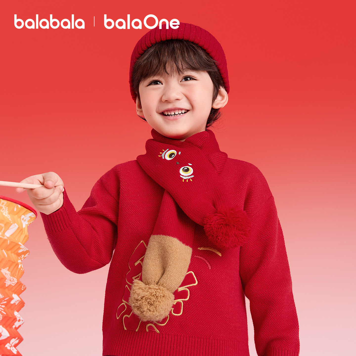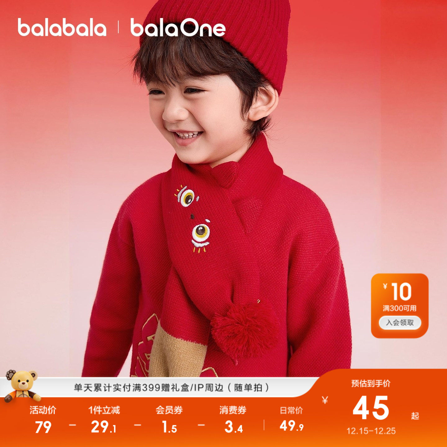 巴拉巴拉儿童围巾男女童2025年新款冬季小童可爱保暖红色新年拜年