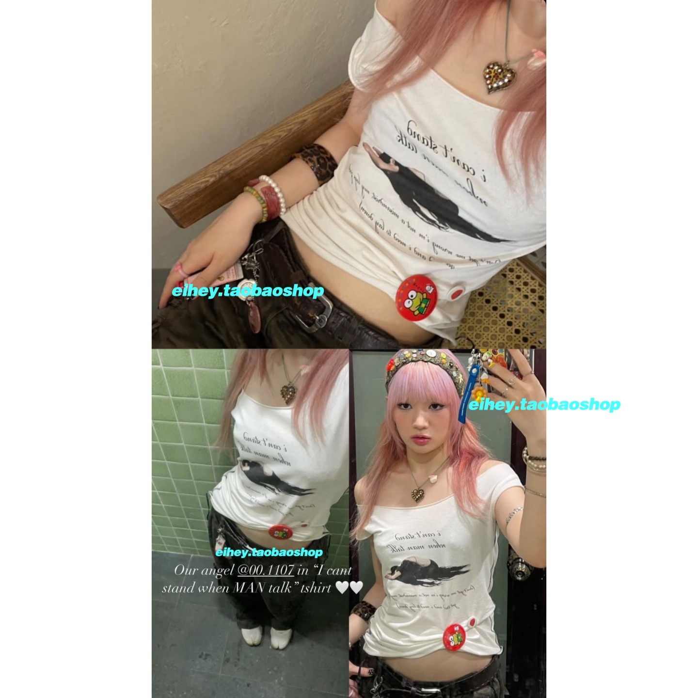 荒荒家 露肩短袖2025夏季新款斜肩设计小心机修身纯欲ins风T恤女