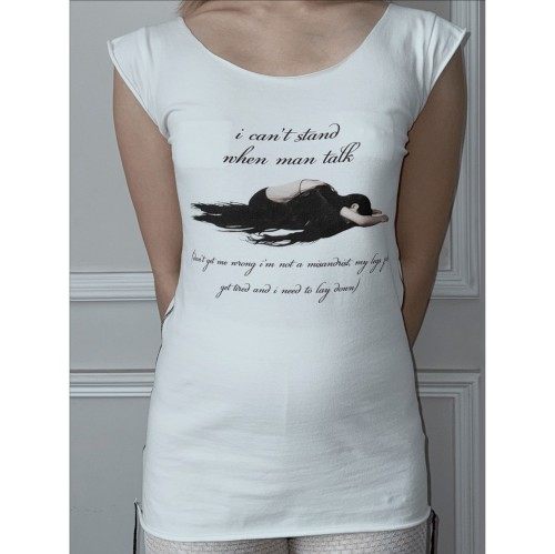 eihey诶嘿25夏季新款明线装饰毛边飞飞袖字母印花修身短袖T恤上衣