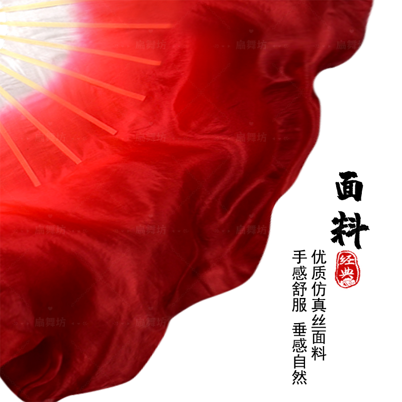 舞蹈扇子双面万疆大酒红深红色秧歌古典舞扇广场跳舞仿真丝