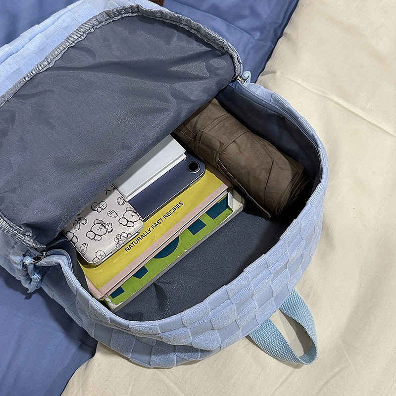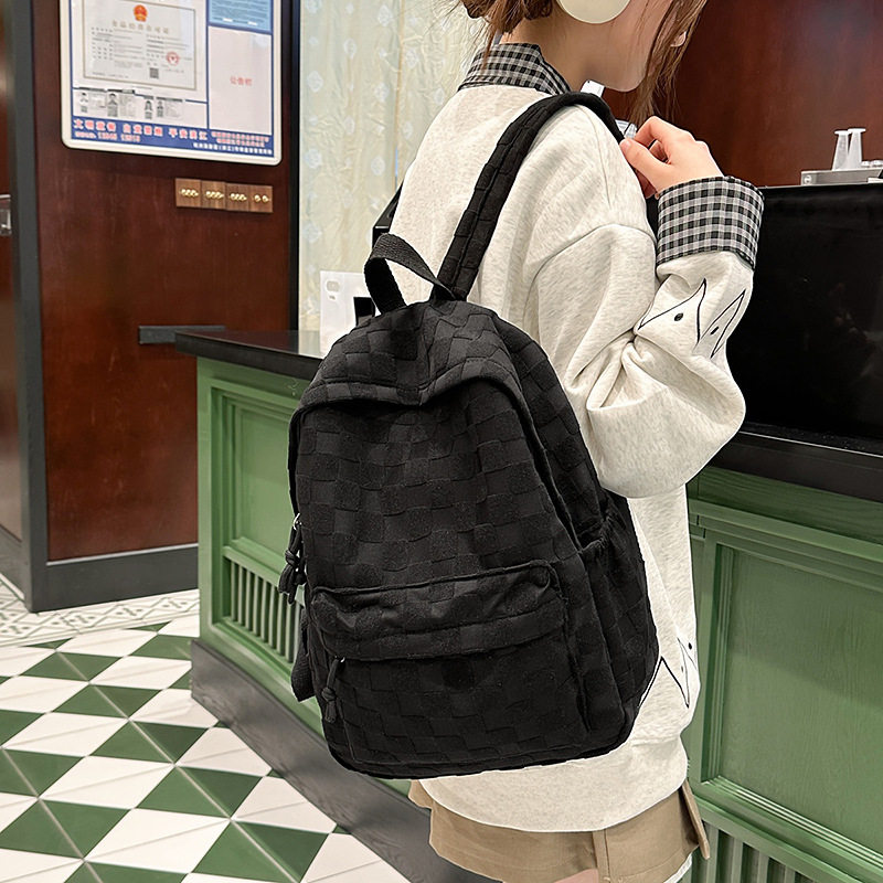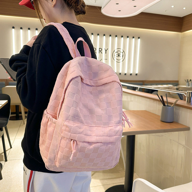 简约格子纹双肩背包初高中书包女双背包可爱学生包休闲旅行包