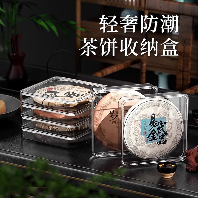 普洱茶饼盒茶叶盒收纳盒透明白茶防潮密封包装盒储存罐展示盒茶架