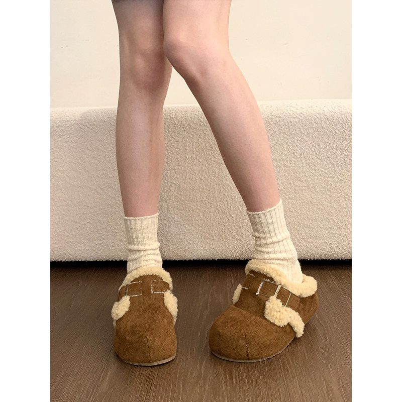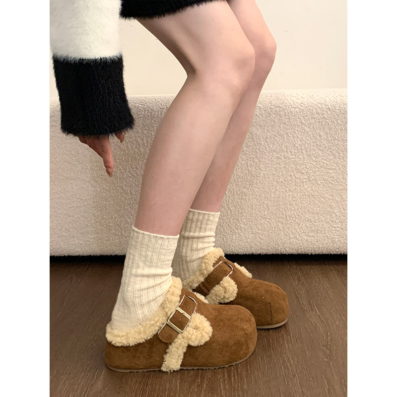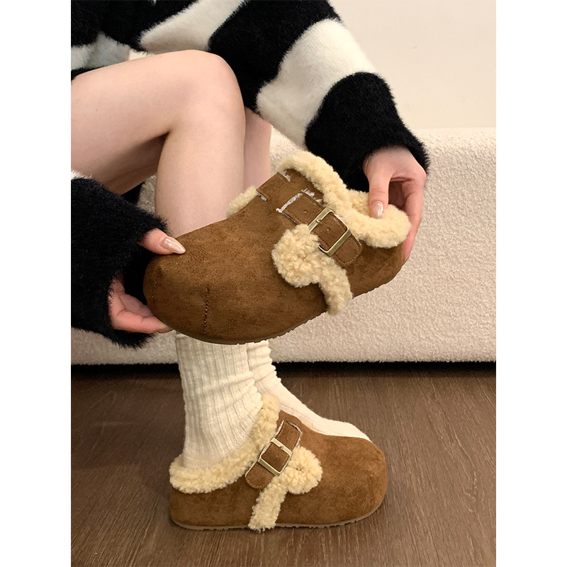 周雨彤同款厚底勃肯鞋女2025新款冬季加绒半拖鞋外穿增高穆勒鞋子