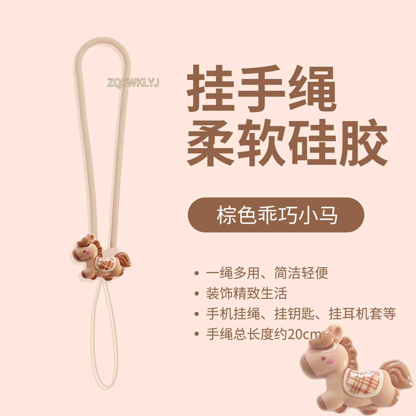 小马手机挂绳马年可爱挂件硅胶短腕带钥匙耳机u盘ccd链饰米棕防丢