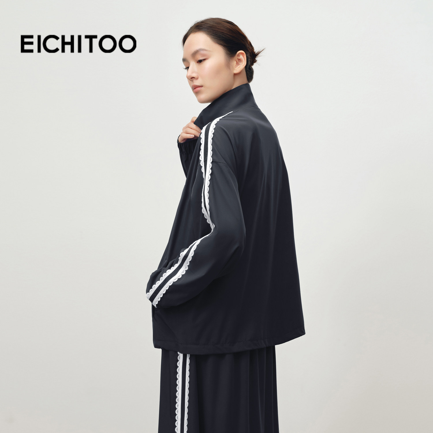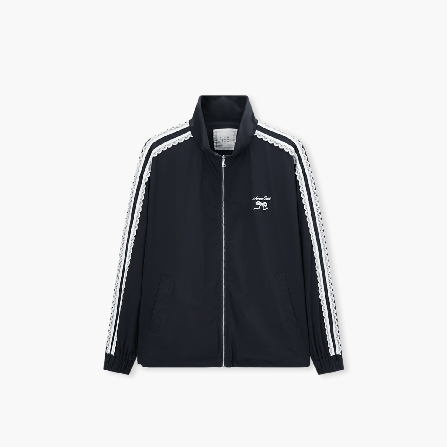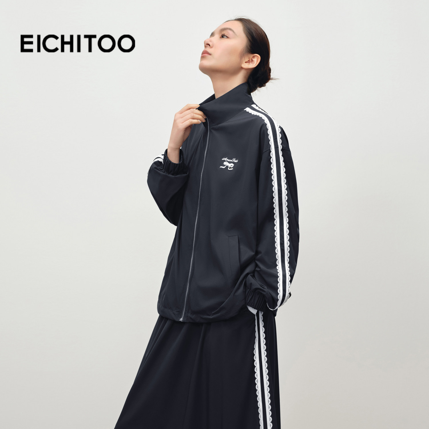 爱居兔休闲运动立领外套女2025年秋季新款蕾丝花边甜美减龄上衣
