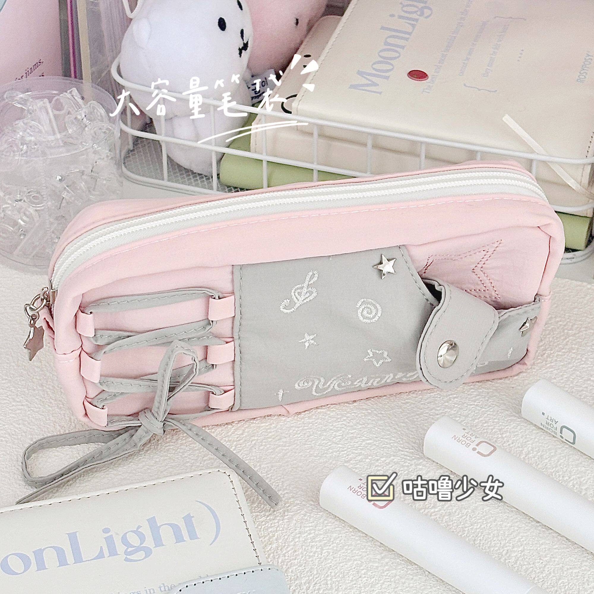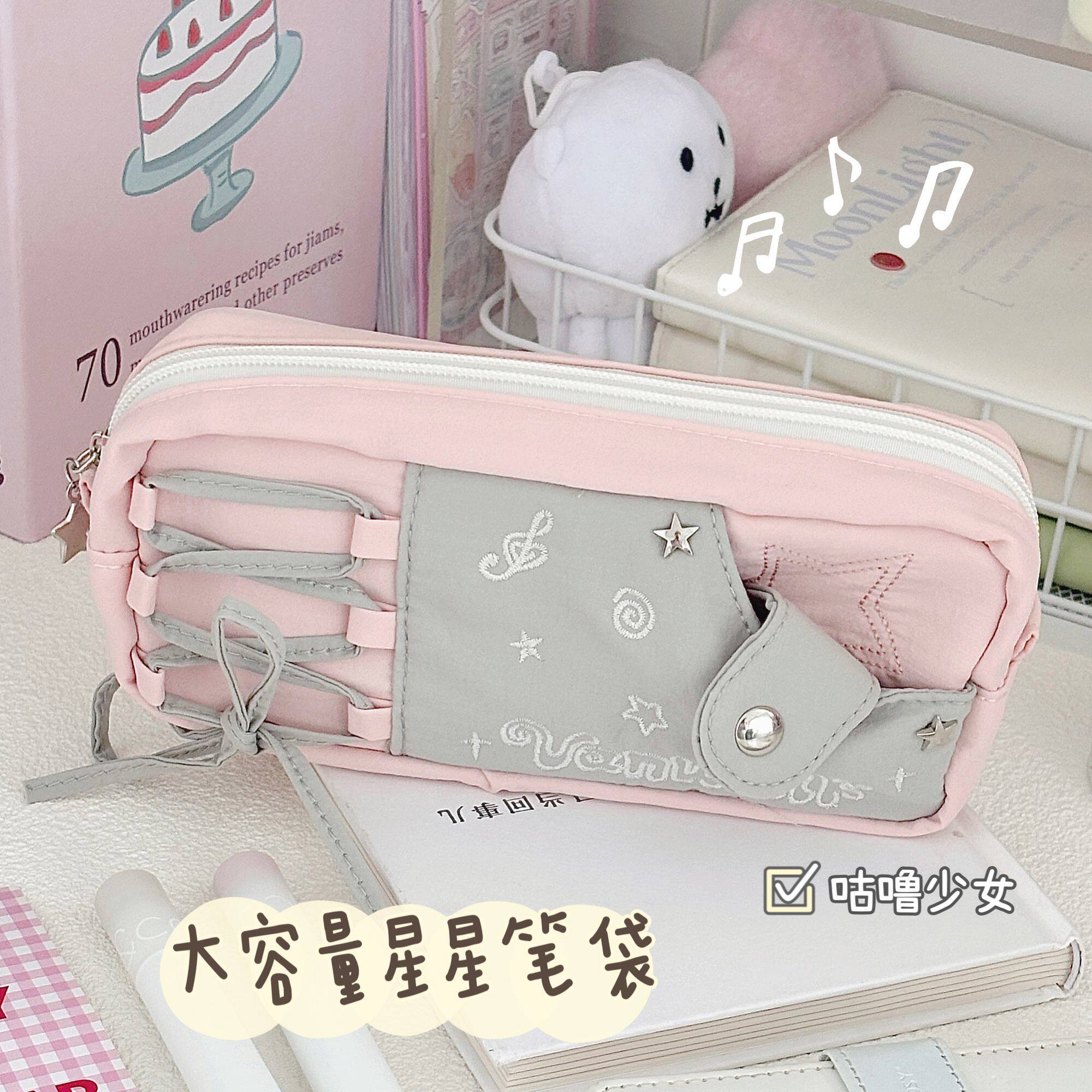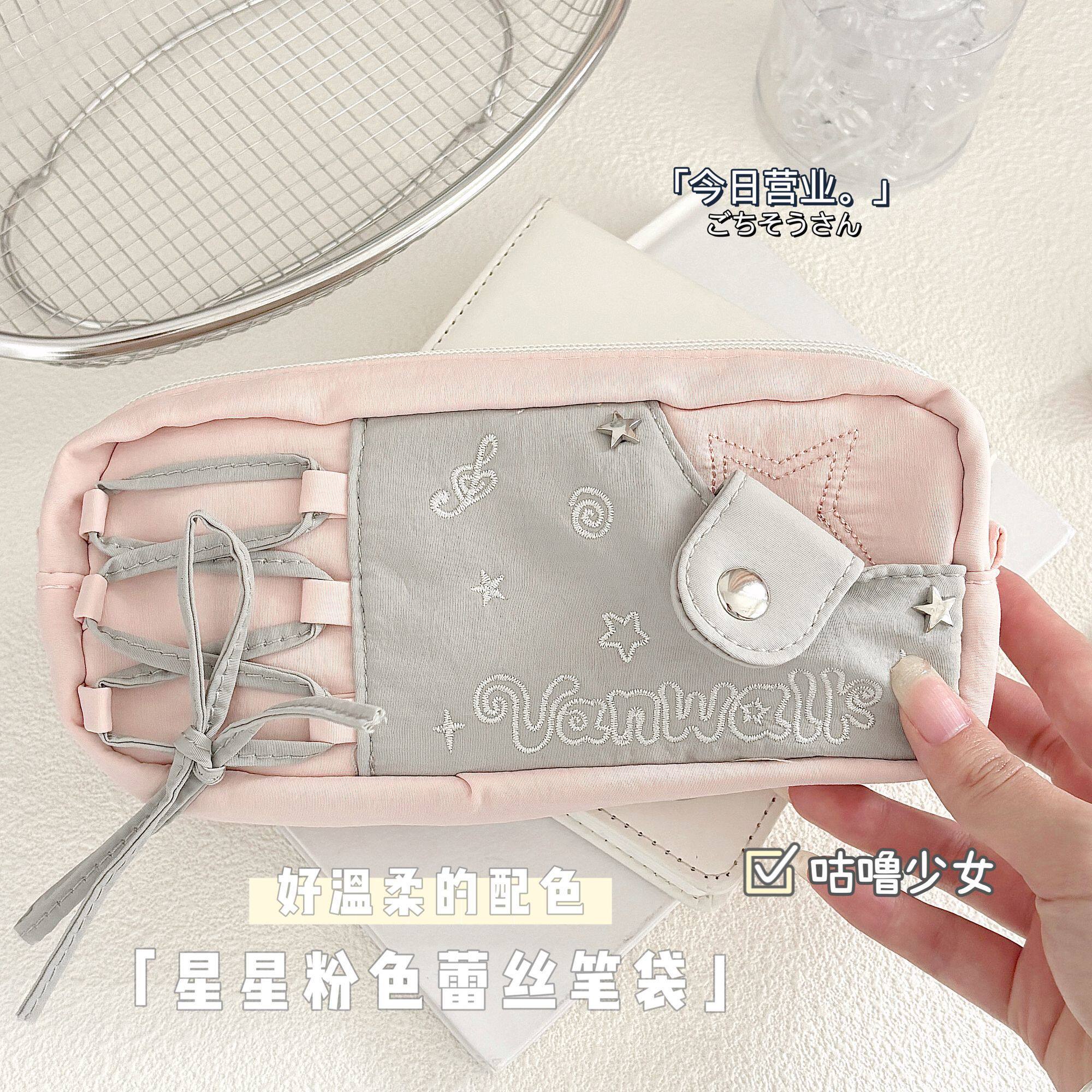 新款星星粉色蕾丝痛包笔袋高颜值简约学生小众文具盒文具收纳袋