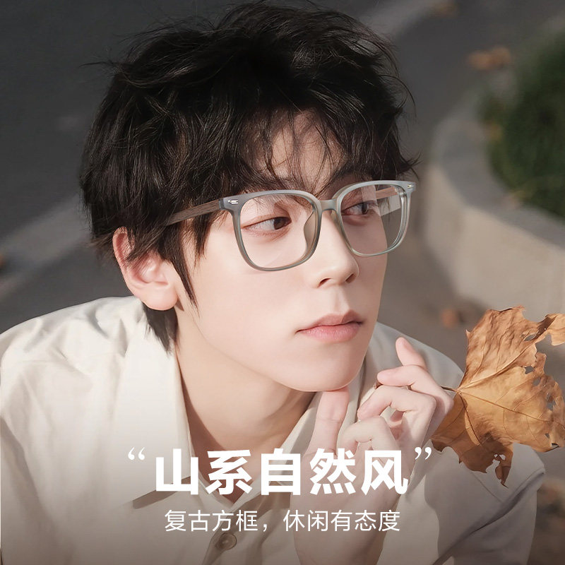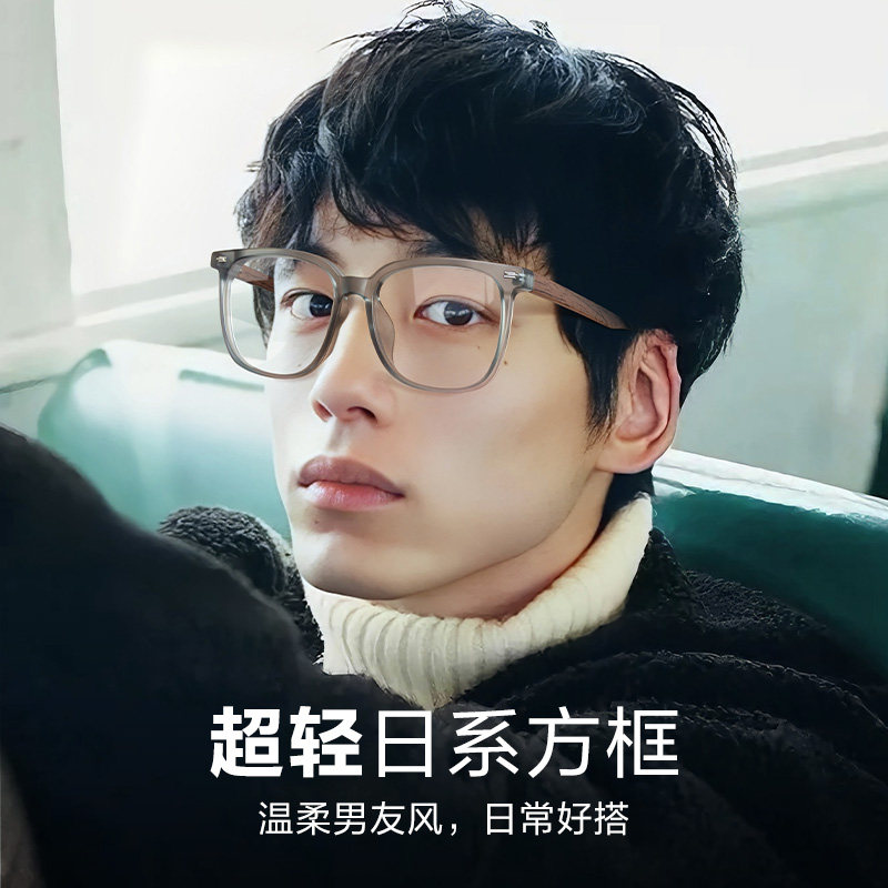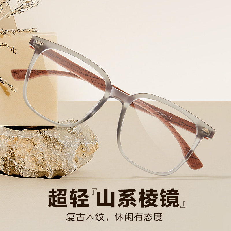 近视眼镜男款超轻TR方框可配散光度数潮流眼睛框百搭复古木纹镜架