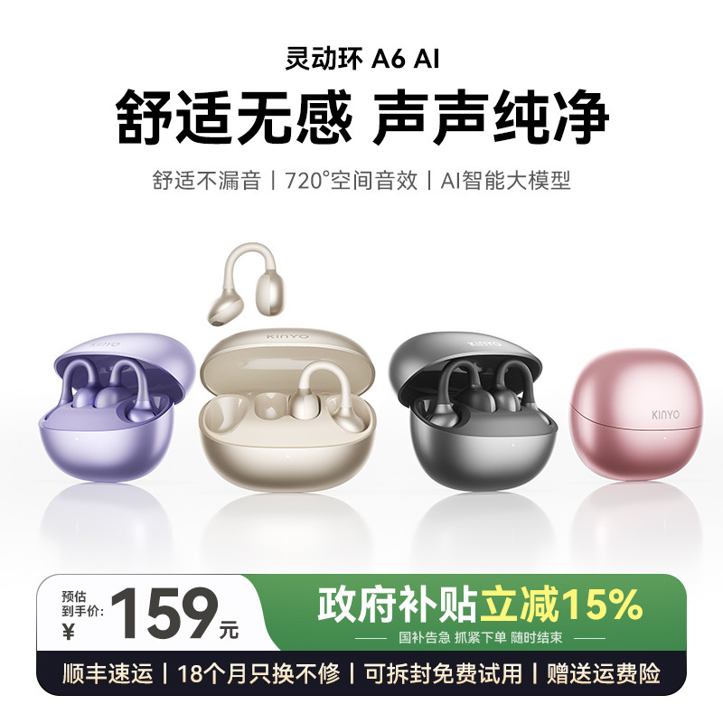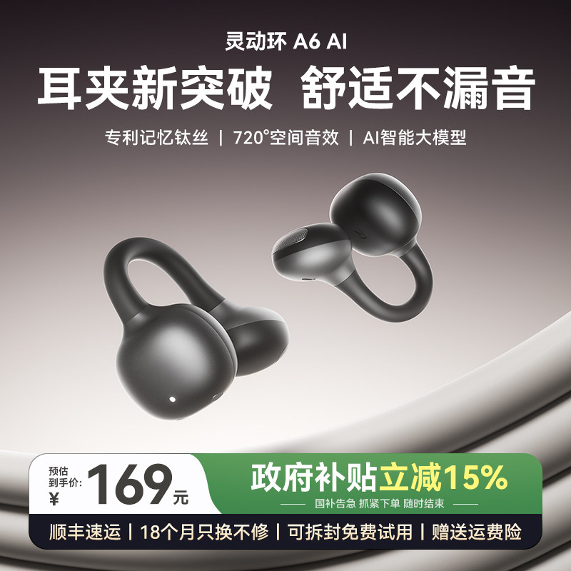 金运灵动环A6耳夹式AI蓝牙耳机2025新款开放无线气骨传导运动翻译