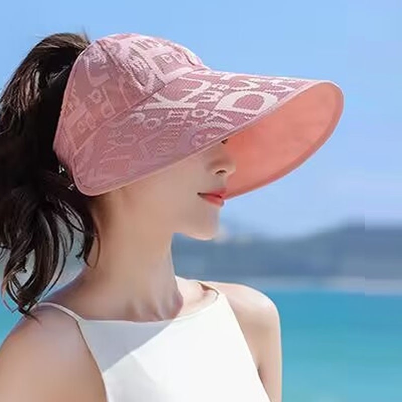 夏季空顶防晒帽时尚百搭大檐户外骑车遮阳帽女防紫外线太阳帽新款
