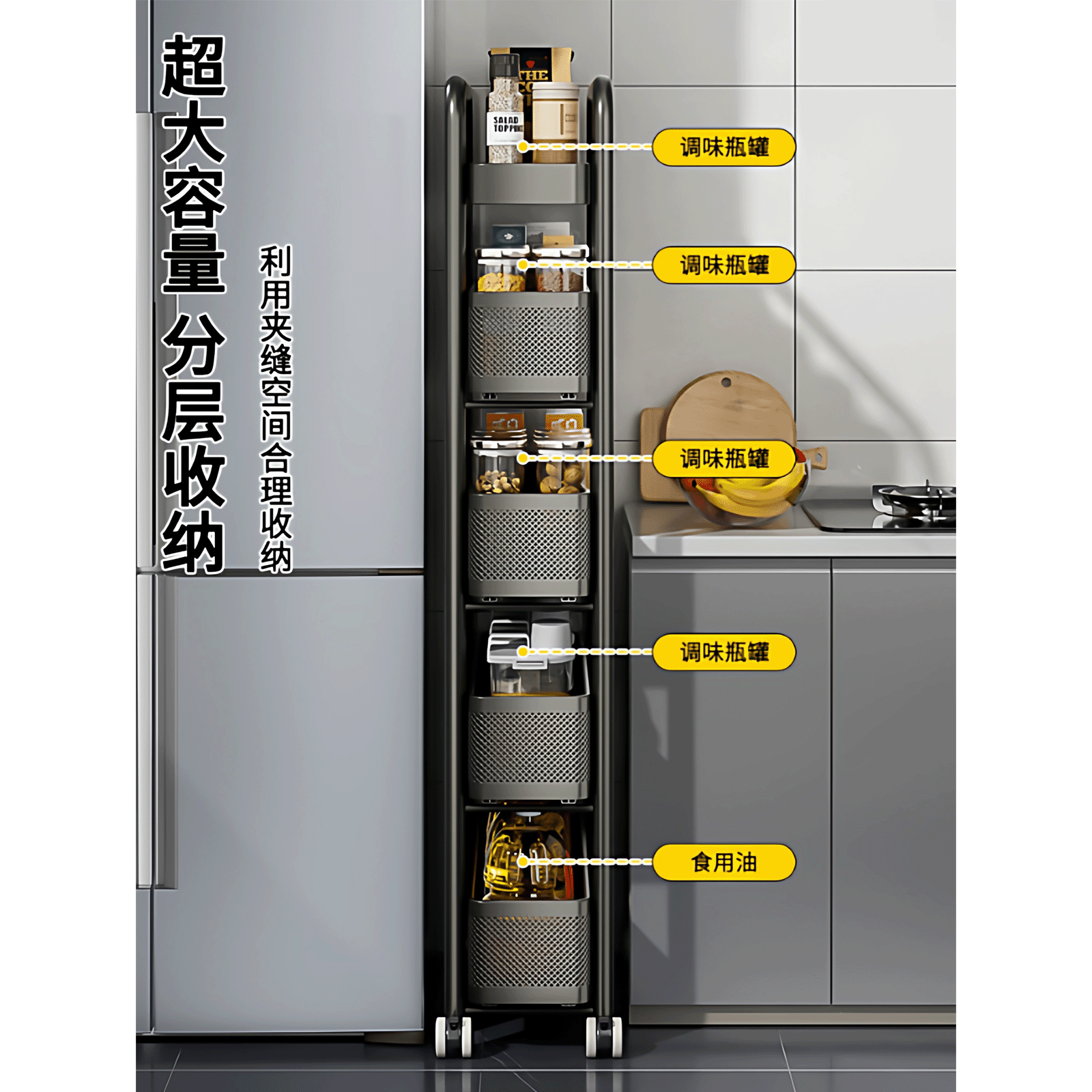 夹缝置物架厨房冰箱极窄缝抽拉篮缝隙收纳柜卫生间小推车多层移动