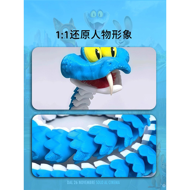 疯狂动物城2周边蛇盖瑞一条蛇仿真模型朱迪尼克手办可动摆件打印