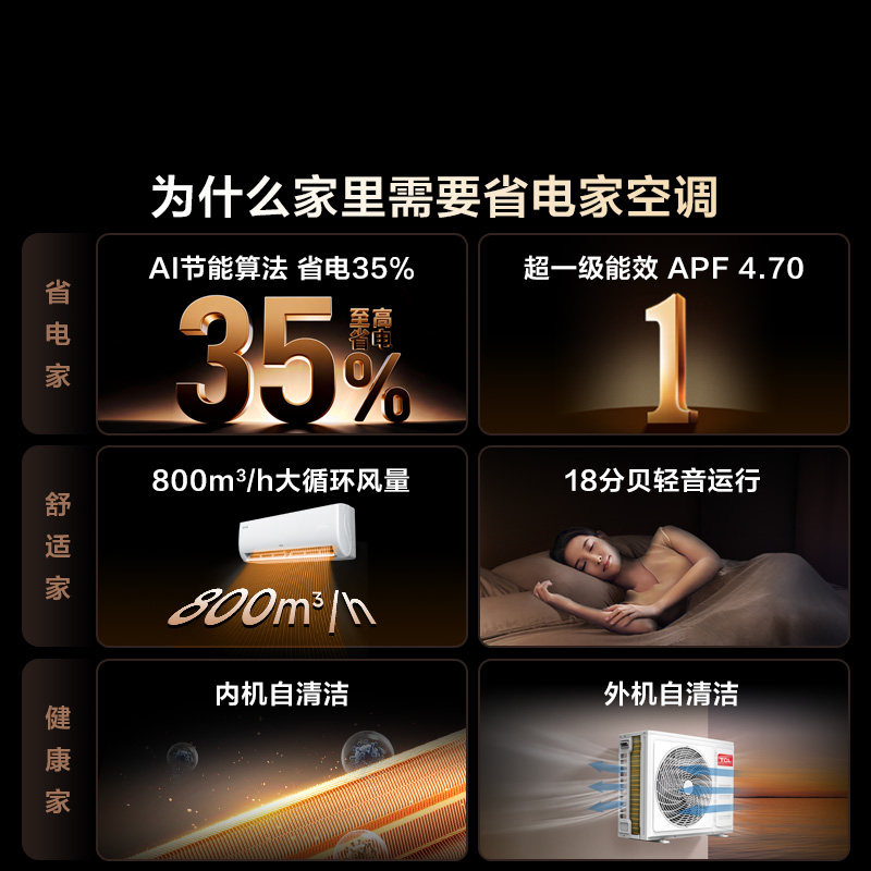 TCL空调省电家2匹大挂机节能新一级冷暖大风量客厅家用变频壁挂式