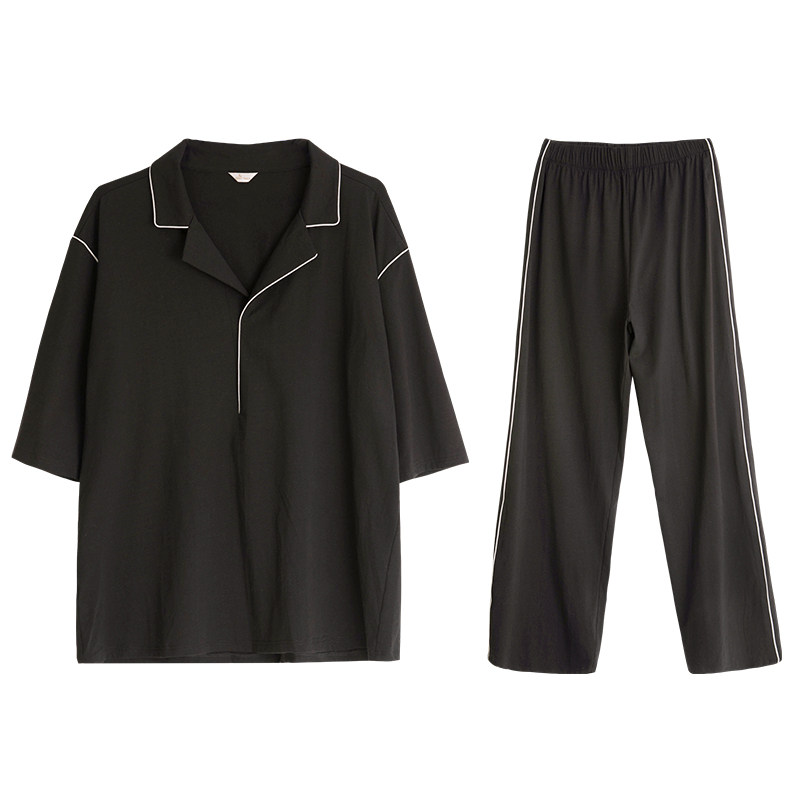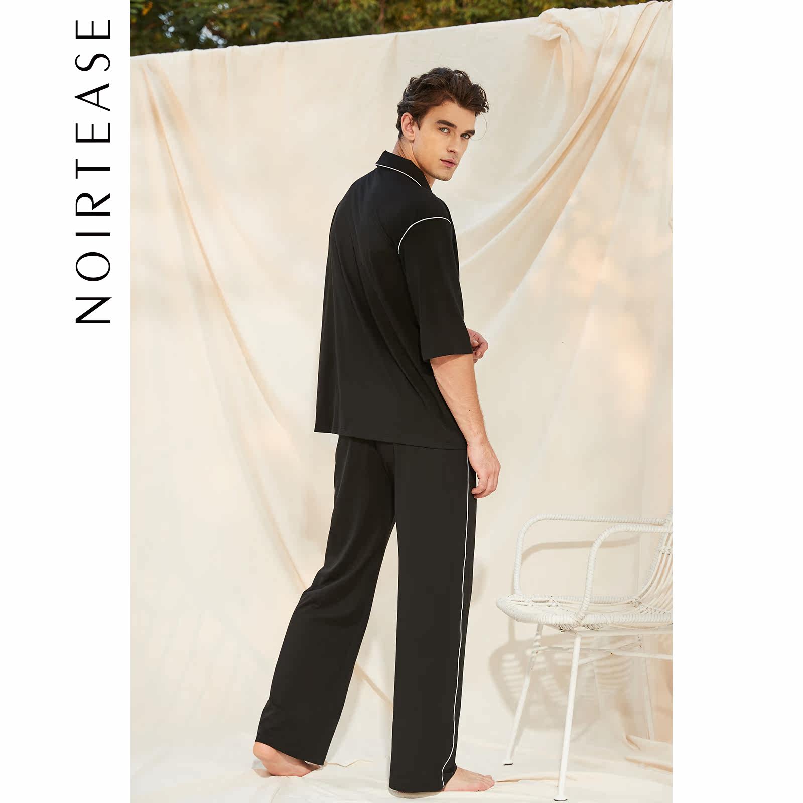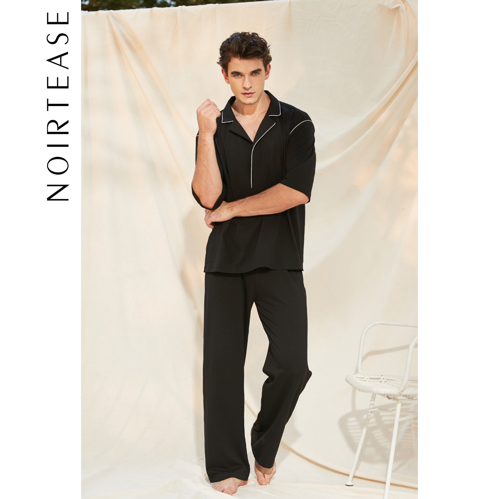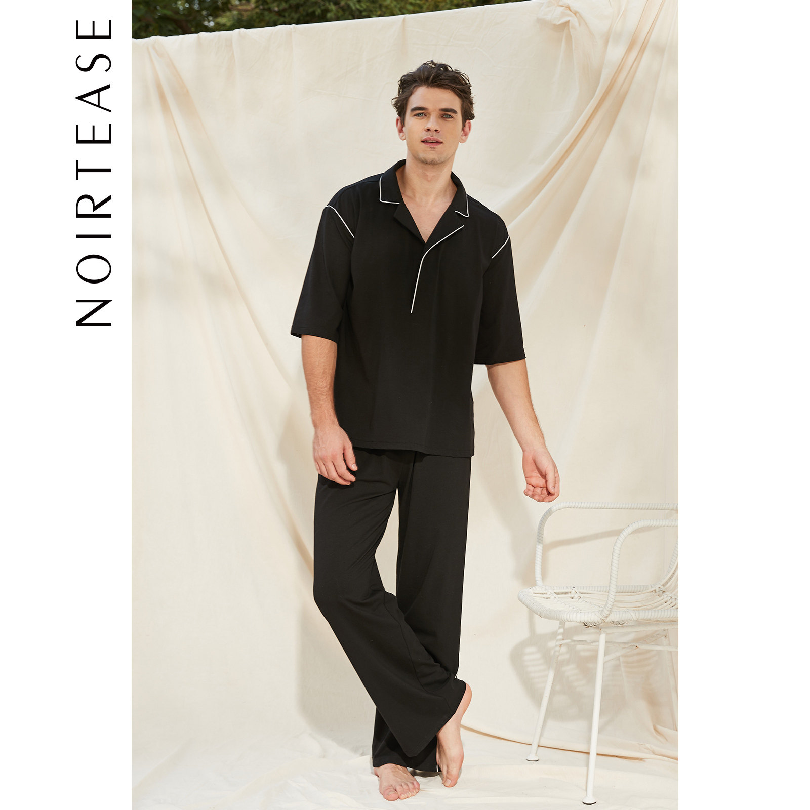 NoirTease奈黎诗男士大码纯棉短袖夏季薄款睡衣两件套家居服套装