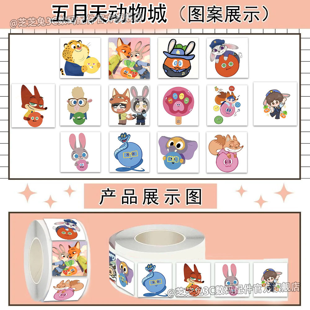 疯狂动物城】兔朱迪尼克狐尼克精美周边卷卷贴兔子警官装饰贴画