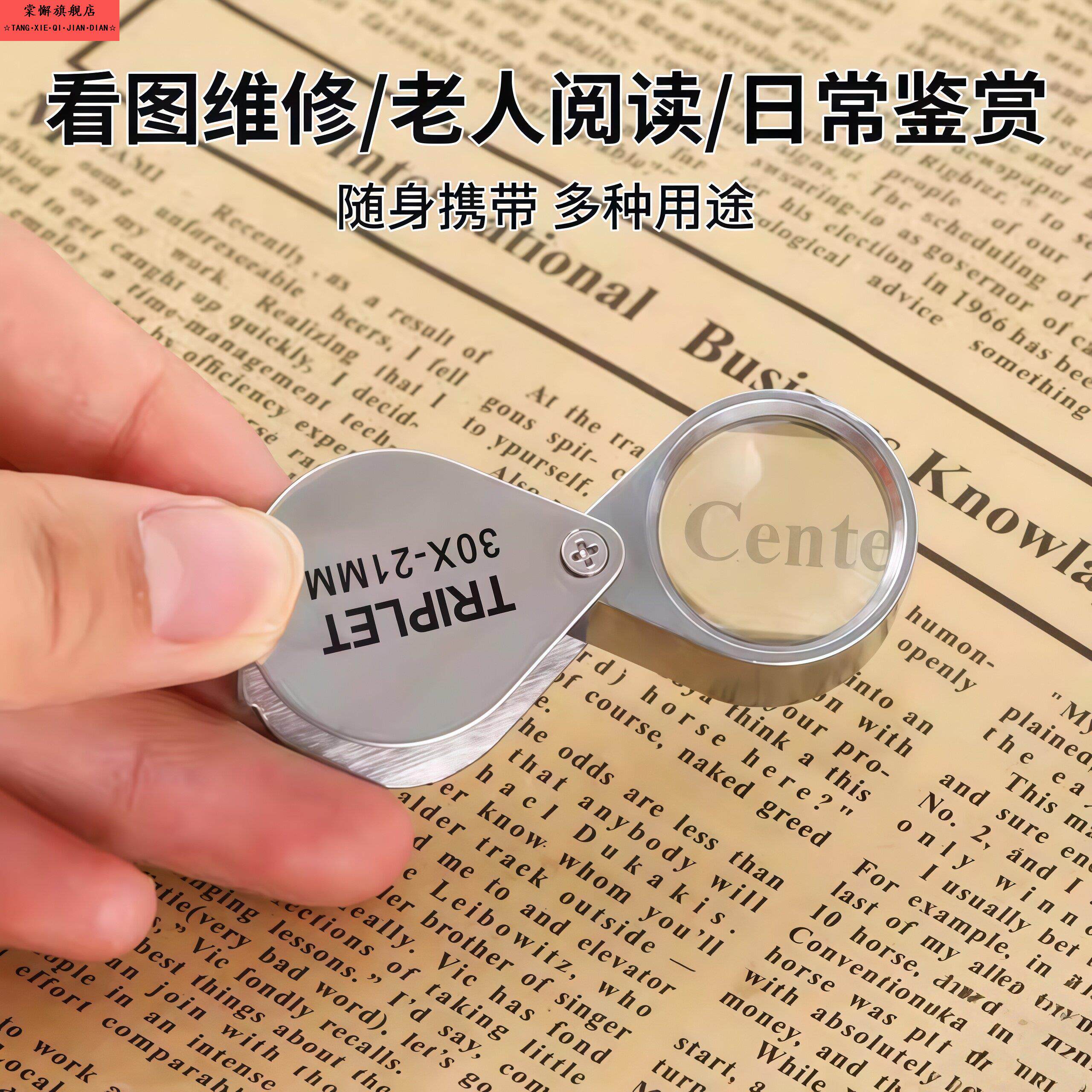 30倍折叠放大镜便携式珠宝钻石鉴定专用宝石玉石文玩古董高清高倍