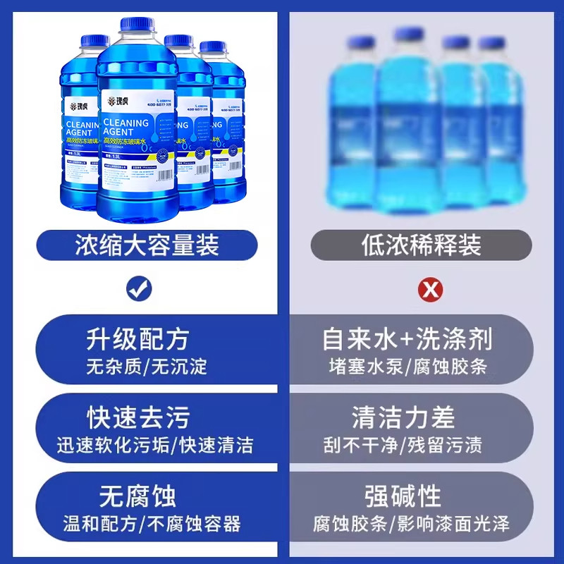 德国原液汽车玻璃水2L装防雨镀膜去油膜虫胶强力清洁除垢冬季防冻