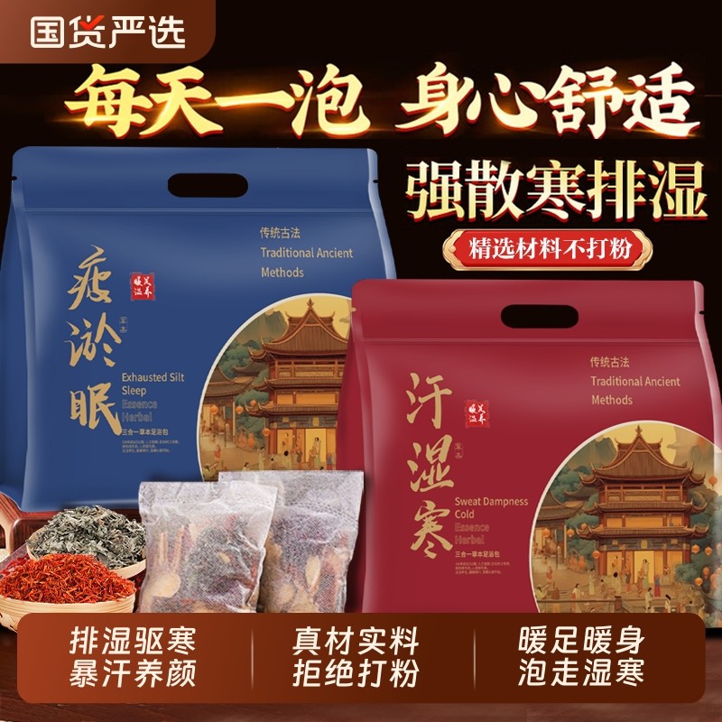 左左女泡脚药包湿气艾叶生姜祛寒足浴包去男女士助睡眠发汗超大包