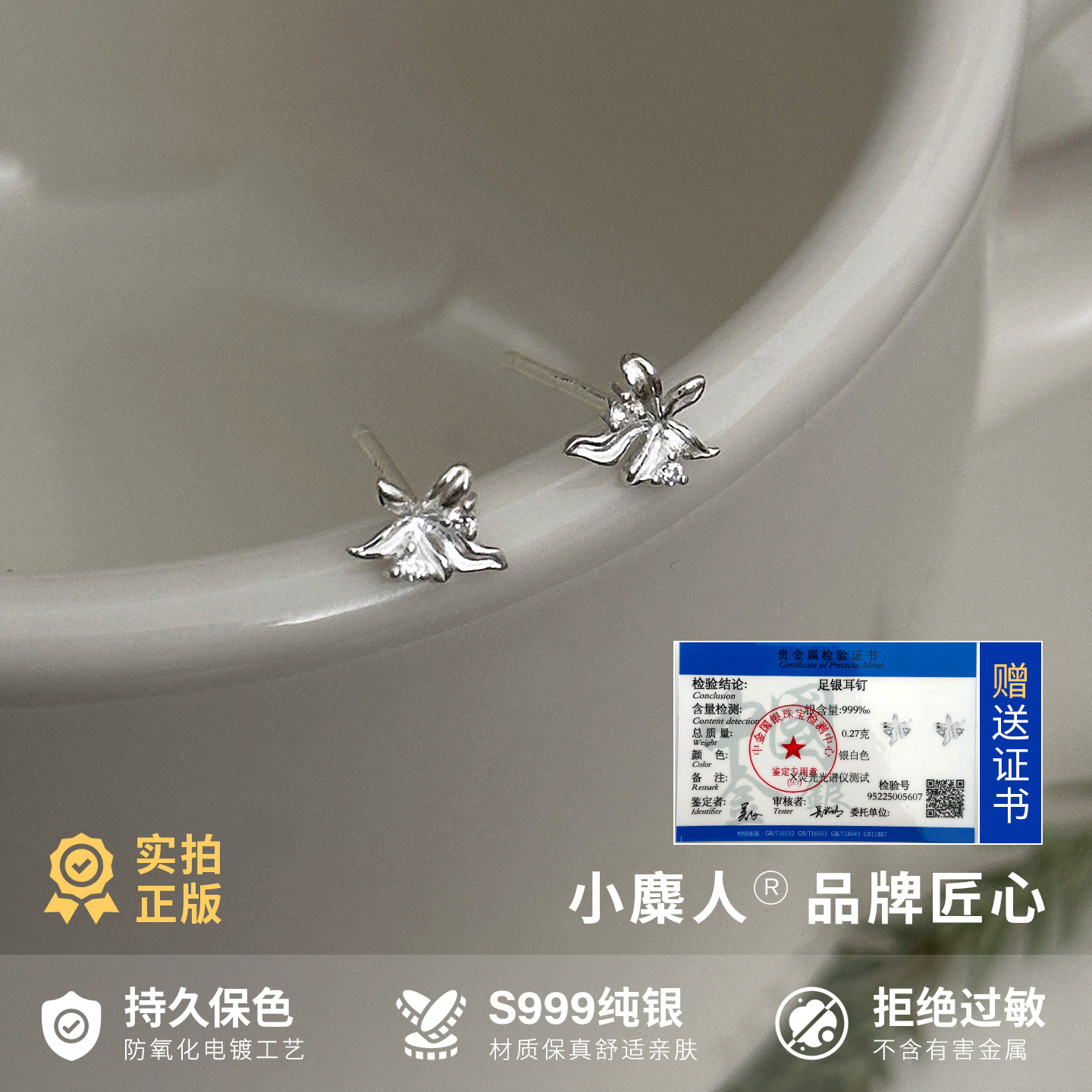 小麋人999纯银小兰花耳钉女耳环耳饰气质学生新款潮足银金属精致
