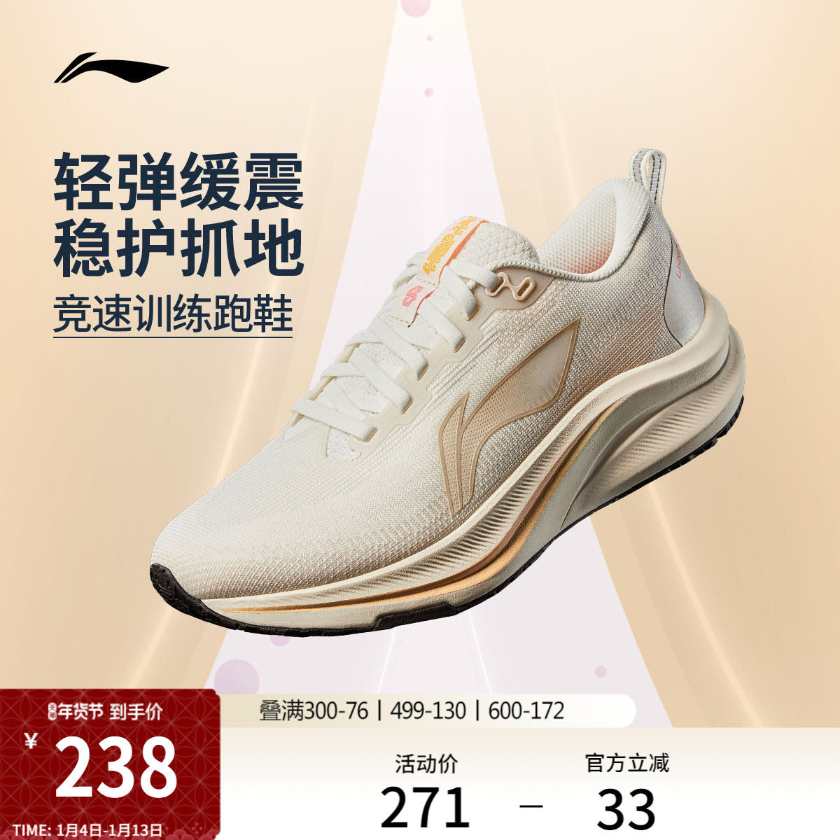 李宁吾跃3.0 | 跑步鞋女款中考专用减震轻便透气厚底休闲运动鞋
