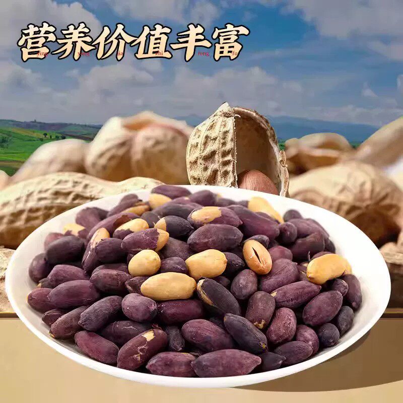 新鲜红皮带壳生花生四粒红花生米农家自种晒干货高产花生红皮花生