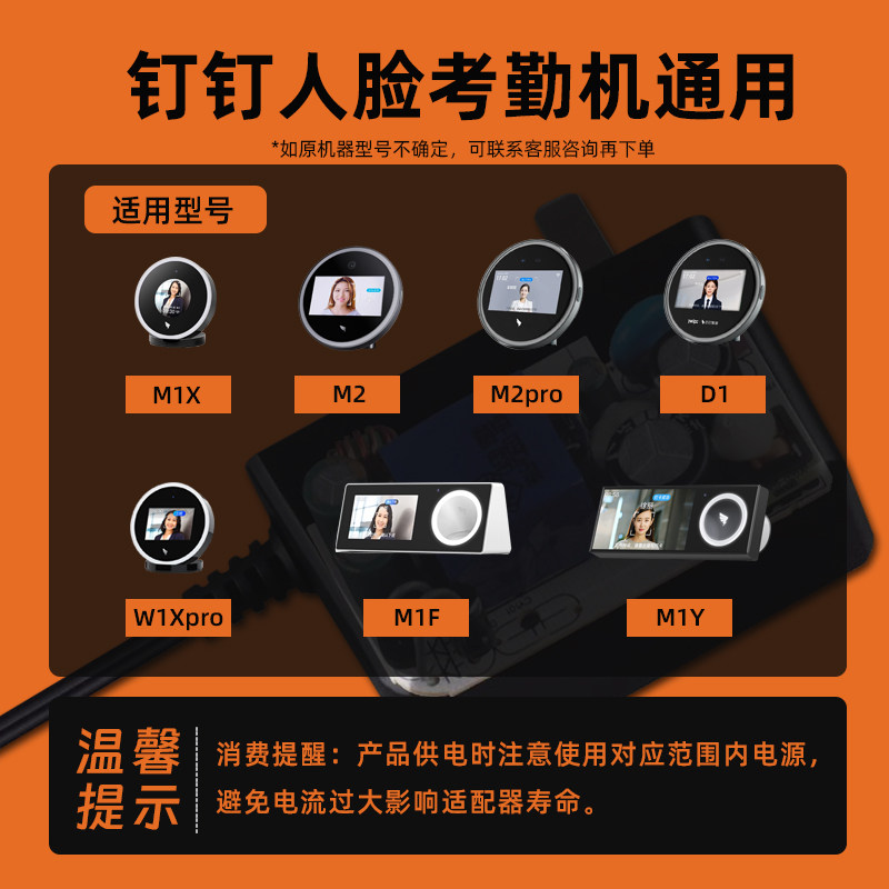 钉钉考勤机智能打卡原装充电器插头电源线适配器 人脸机款12V1A 指纹机款5V1A 通用M1X/M2/M1F/W1X/M1Cpro