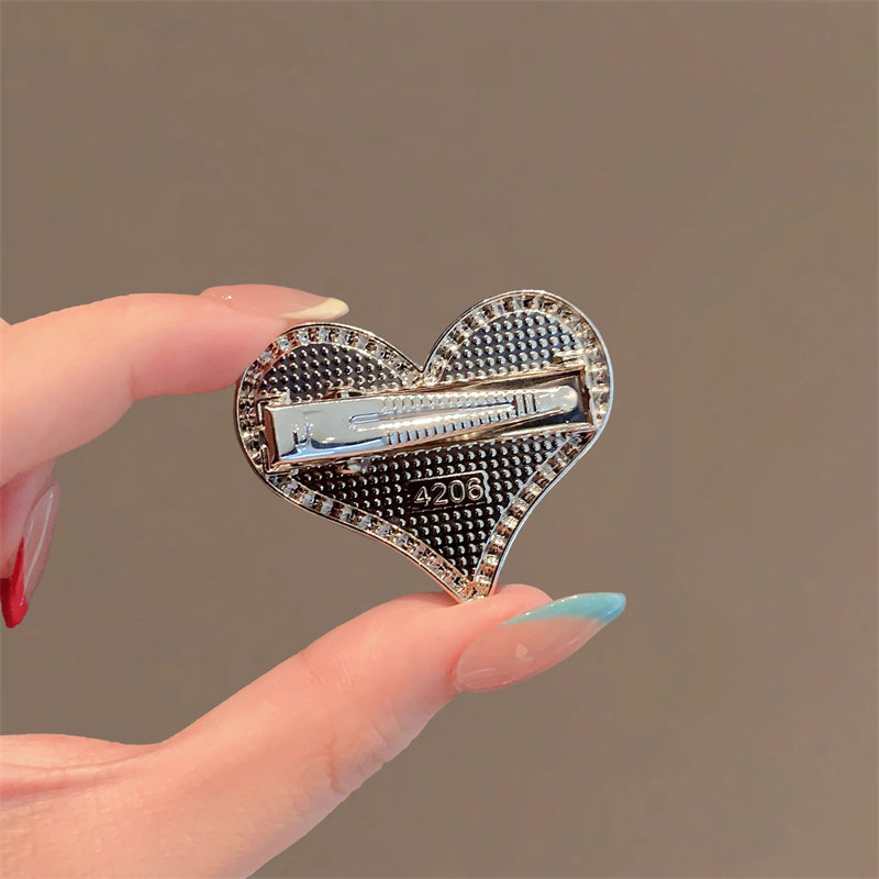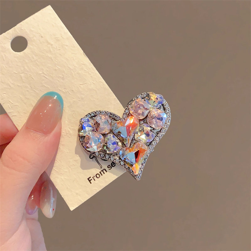 2025新款鸭嘴夹彩色水晶锆石爱心发夹女甜美侧边碎发刘海夹子发卡