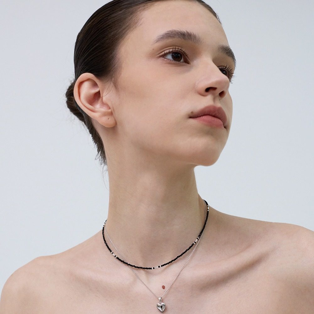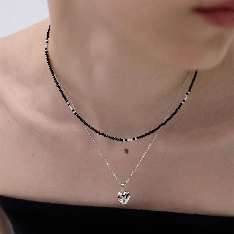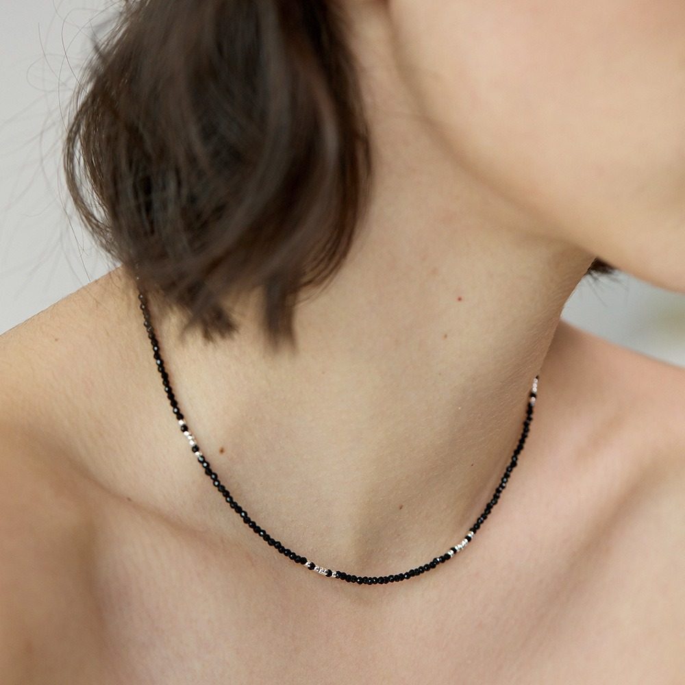 黑尖水晶项链女百搭高级感串珠锁骨链小众锆石极细串珠新中式饰品