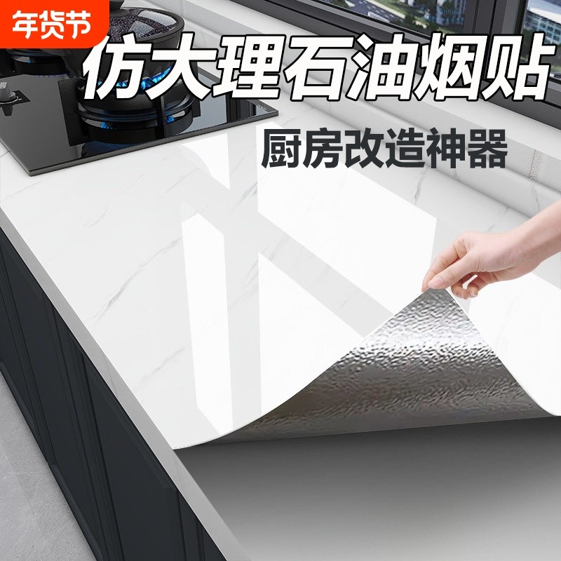 厨房墙面防油贴纸自粘防火耐高温大理石灶台面防水防潮墙贴墙壁纸