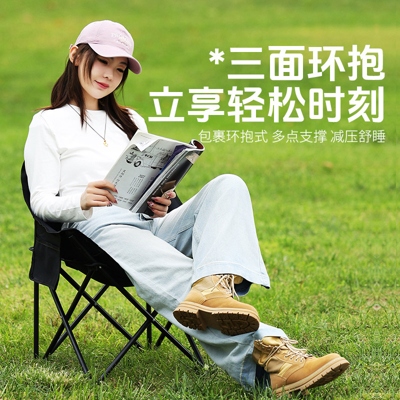 野外露营便携式钓鱼月亮椅子午休神器折叠沙滩休闲椅露营户外椅子