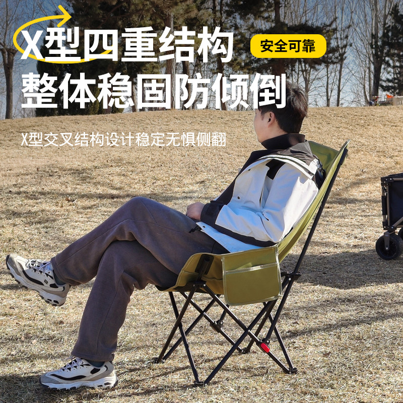 月亮椅露营椅子高靠背户外折叠椅便携式躺椅钓鱼凳沙滩椅野餐桌椅