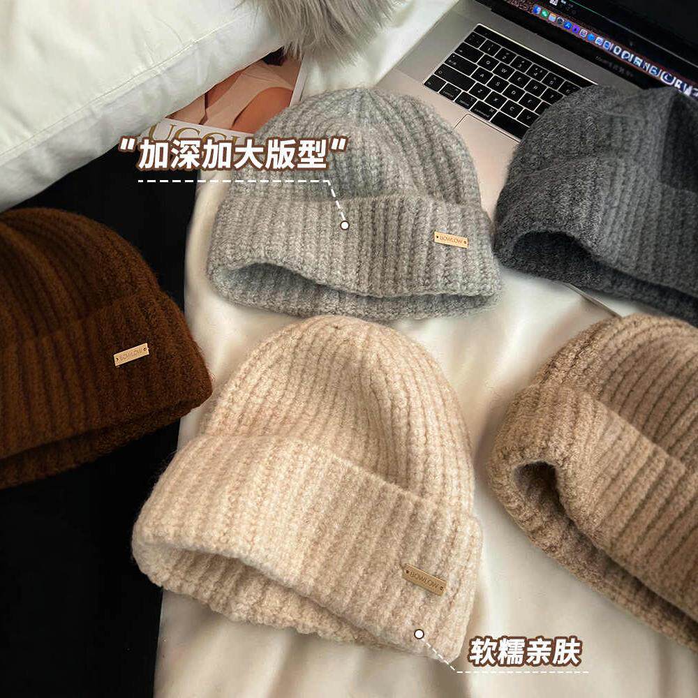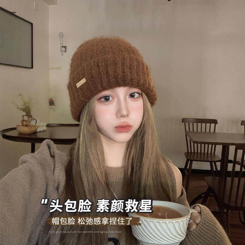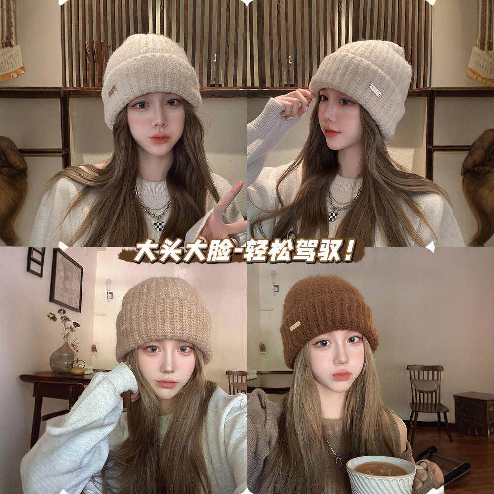 美拉德毛线帽子女秋冬加厚保暖羊毛针织帽宽松大头护耳冷帽显脸小