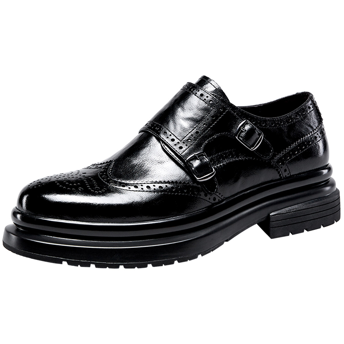 【小牛皮】青润chioryn袋鼠鞋男黑色真皮增高厚底休闲通勤风皮鞋