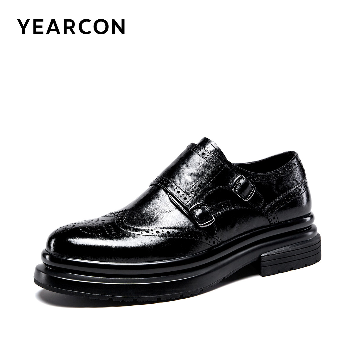 MRA德比鞋男款圆头大头鞋黑色工装鞋通勤马丁靴厚底增高休闲皮鞋