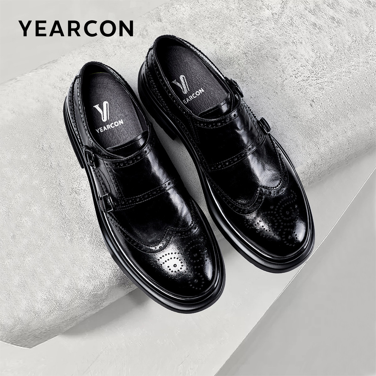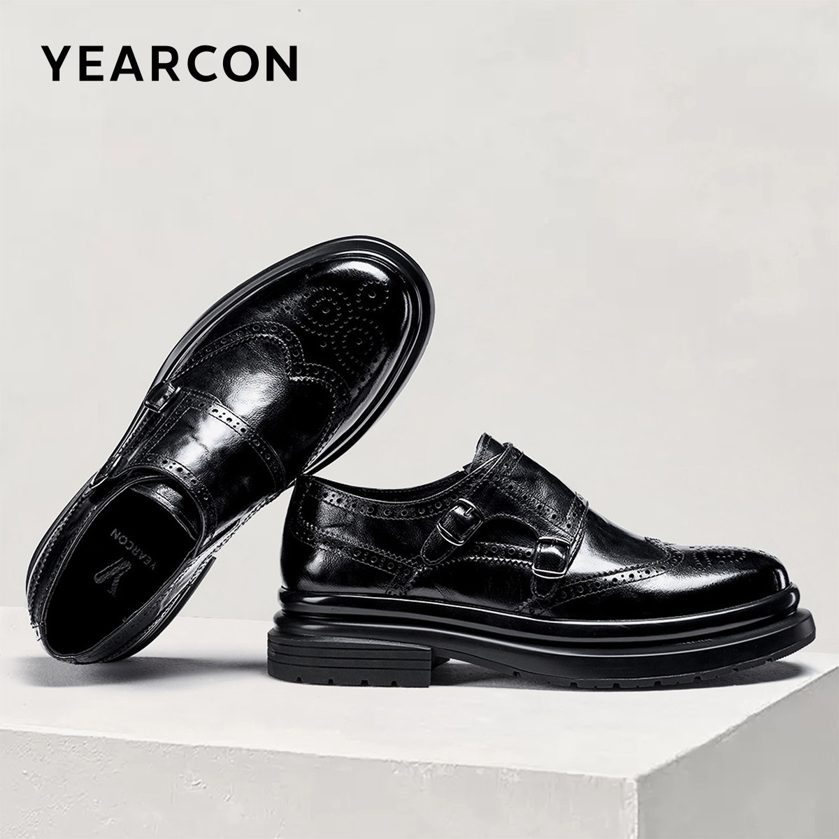 MRA棕色德比鞋男款2025新款秋季低帮大黄靴厚底增高大头工装皮鞋