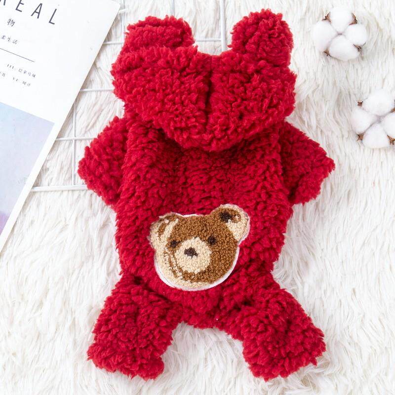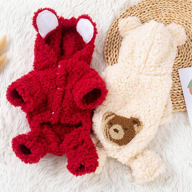 宠物猫咪衣服秋冬季过年保暖加厚小型犬狗狗衣服防掉毛连帽四脚衣